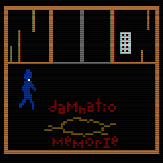 Attempting to take the elevator back to the normal world, the buttons don't work and there's a hole on the ground. Written around it is "damnatio memoriae", Latin for damnation of memory. Jumping down three times (possibly because the elevator displays 10 in the unseen world), John finds himself in the real 7th Floor.